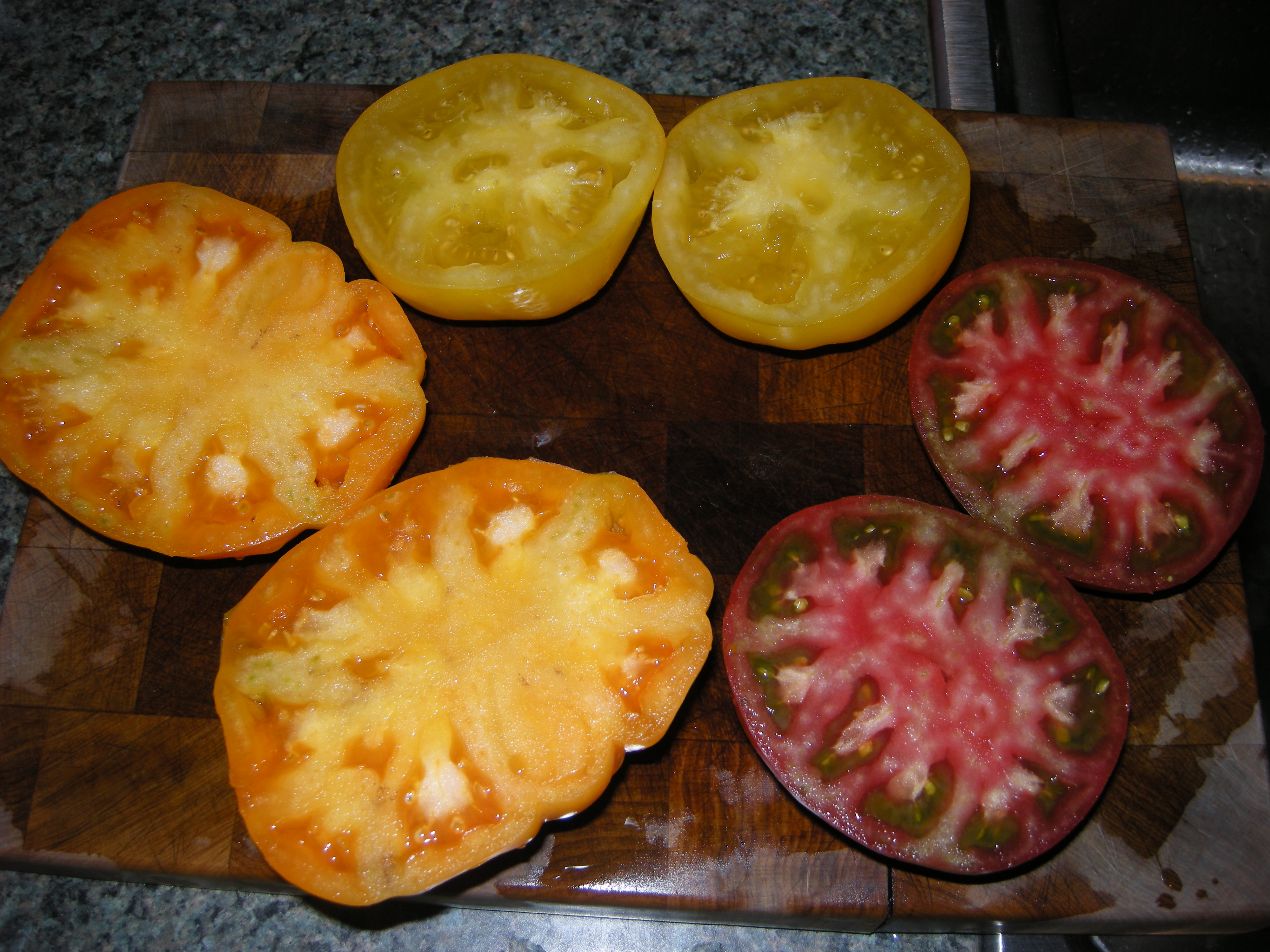 My favorite part is showing giant photos of ripe tomatoes sliced in half and describing their flavors: Cherokee Purple, smoky and complex. Yellow Pear, like tart yellow grape that pops in your mouth when you pop it in your mouth. Brandywine: perfect balance of acids and sugars.