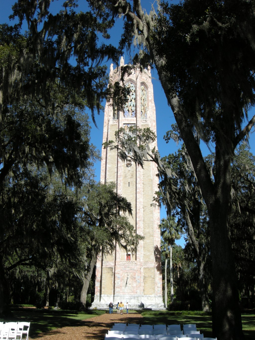 205' tall tower: Iron frame, marble and coquina exterior. At the top is a carillon of bells that ring every 30 minutes.
