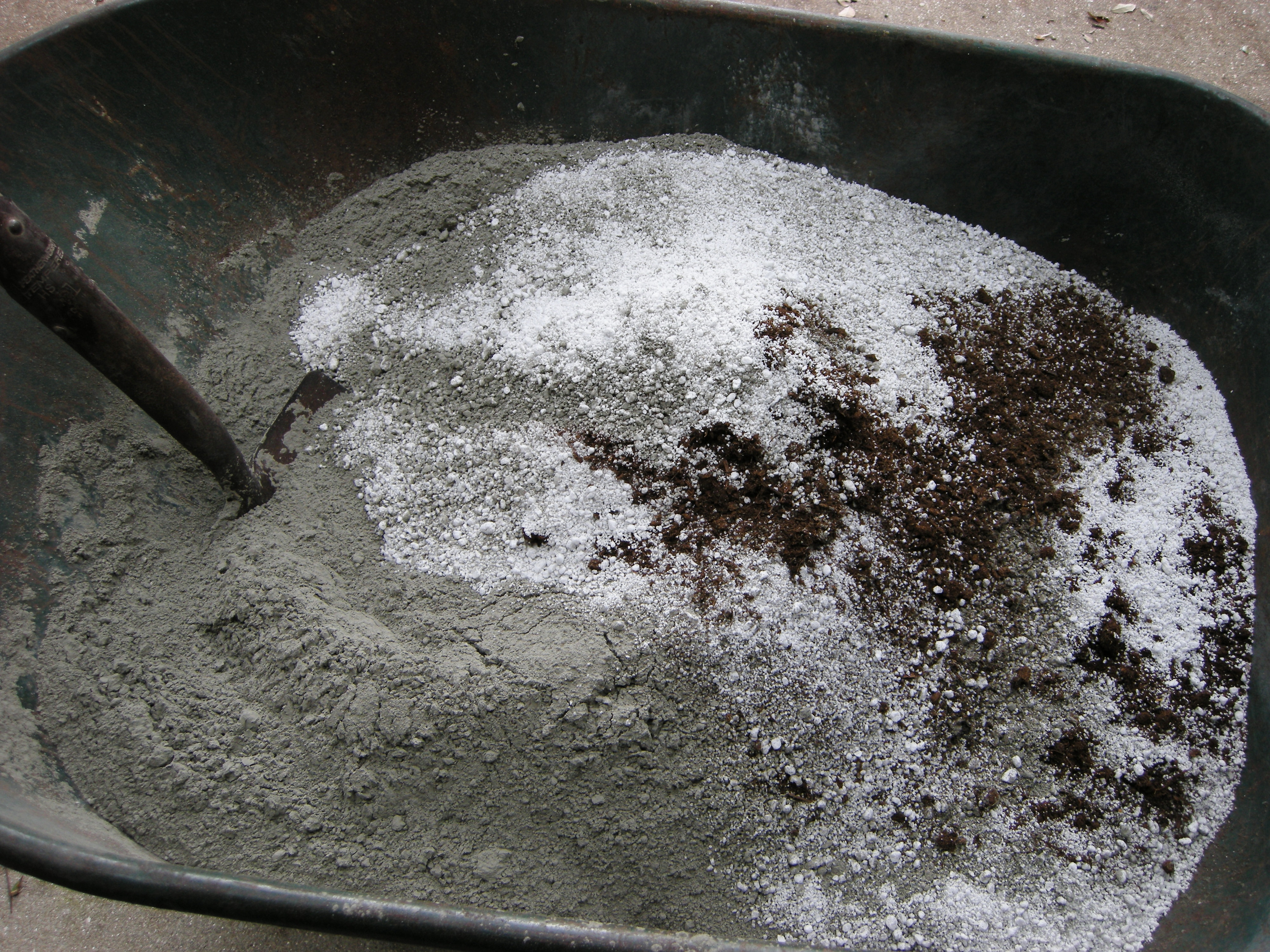 What fun, making a pot out of dirt. Actually hypertufa is a mix of peat, perlite, and cement but working with it is just like making mud pies. I went for the rustic look so I did not screen the peat, making it lumpier with some sticks. And I colored it “charcoal” to avoid the sidewalk-look. Click on each photo for details.