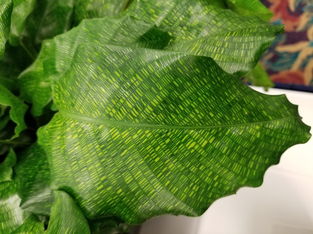 No leaf shine here: This orange Anthurium is naturally glossy.
