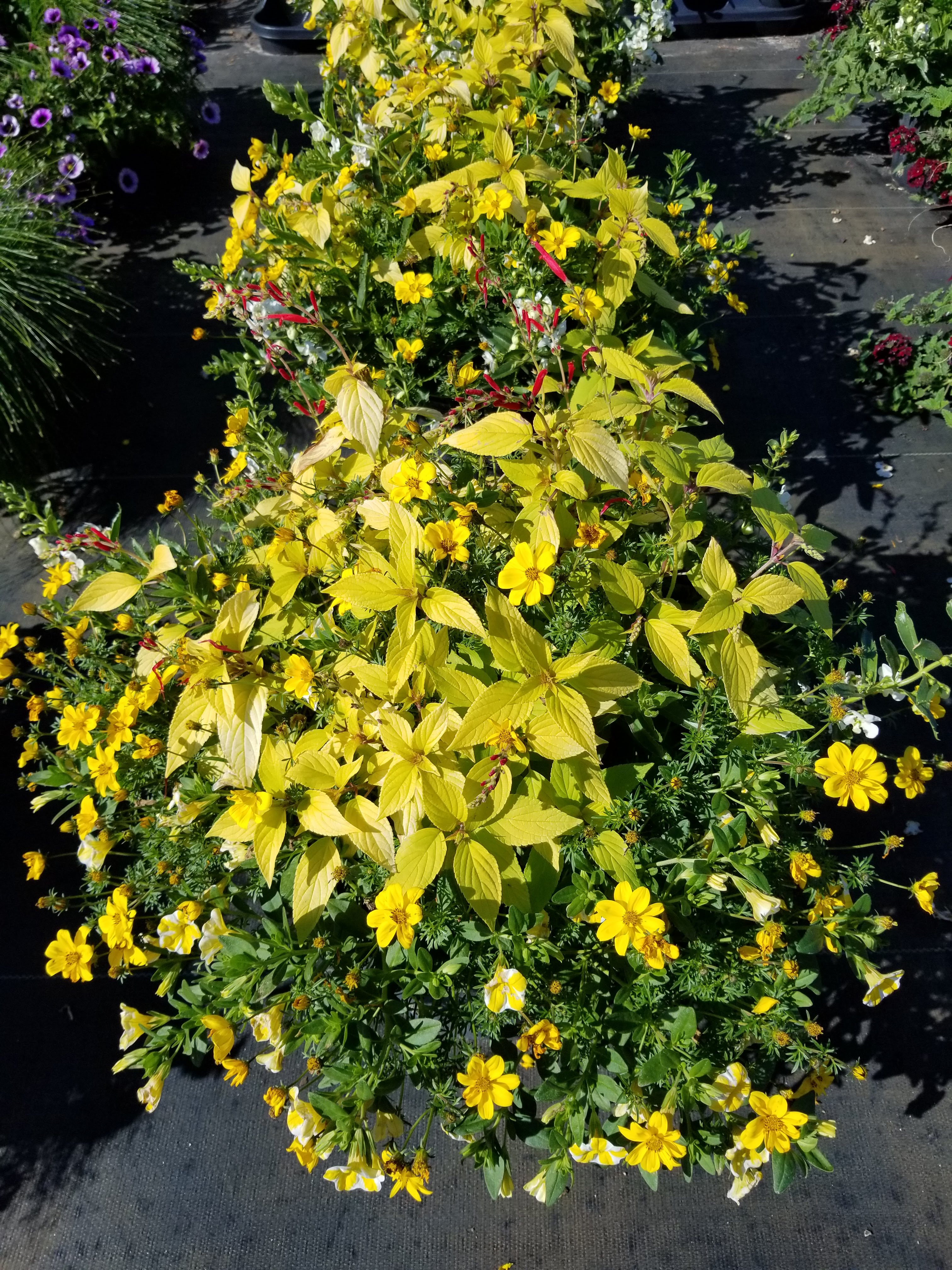 More warm colors with coleus, bidens and calibrachoa.