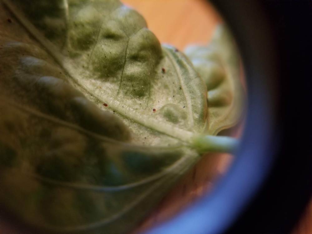 Most insects are visible. But these plant-feeding mites are nearly microscopic. Their feeding on leaves can be evident before you see them. Mites damage individual leaf cells causing an off-color. Leaves can also pucker. By the time you see webbing, it is an infestation.