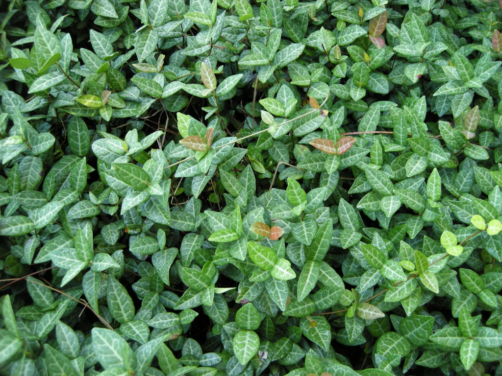 The Asian Jasmine (Trachelspermum asiaticum) rarely flowers. It is a common ground cover often used as a lawn replacement in the shade. Once established it can be mowed at about 3-4″ once a year during it’s growing season. It will grow back thicker.