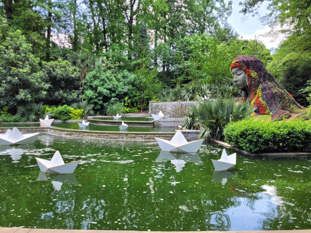 Origami in the Garden displayed larger-than-life sculptures by Kevin and Jennifer Box that resemble folded paper.
