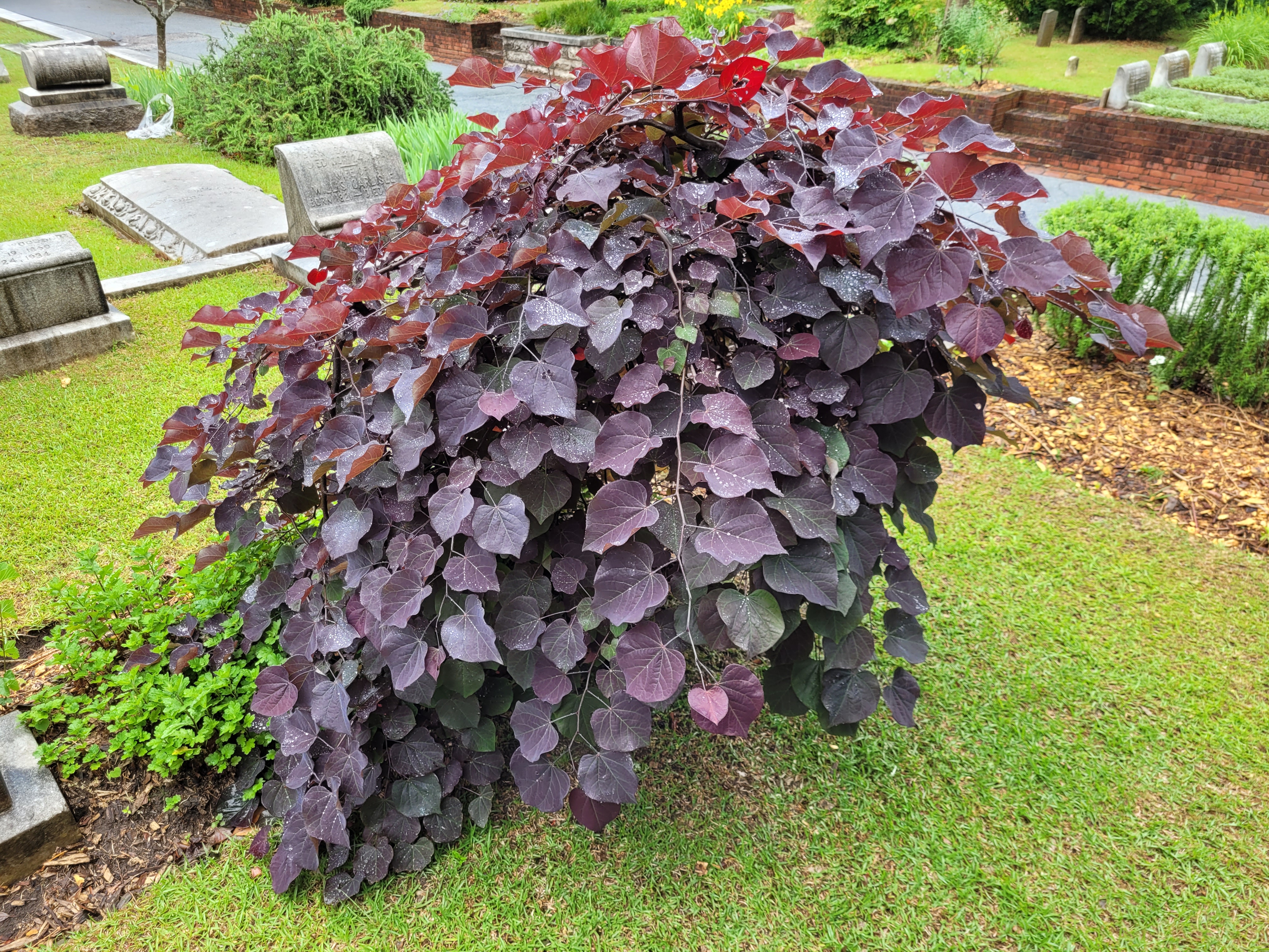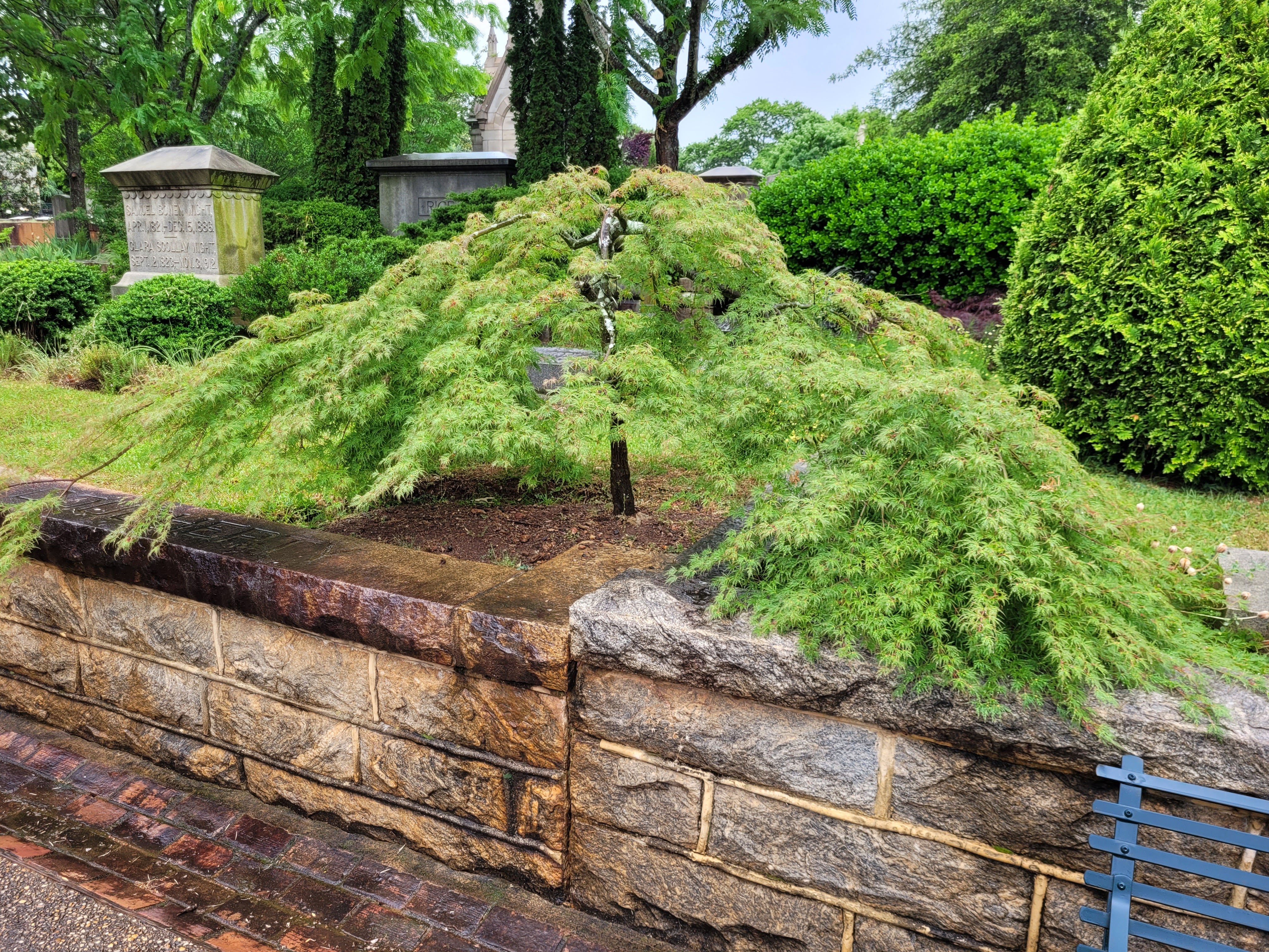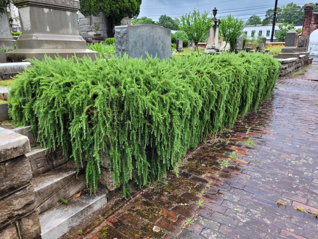 The red brick walkways were laid out well, leading from the various sections that have expanded from it’s inception in 1850. The landscaping is installed by the families and maintained by a foundation of volunteers. The city mows the lawns.