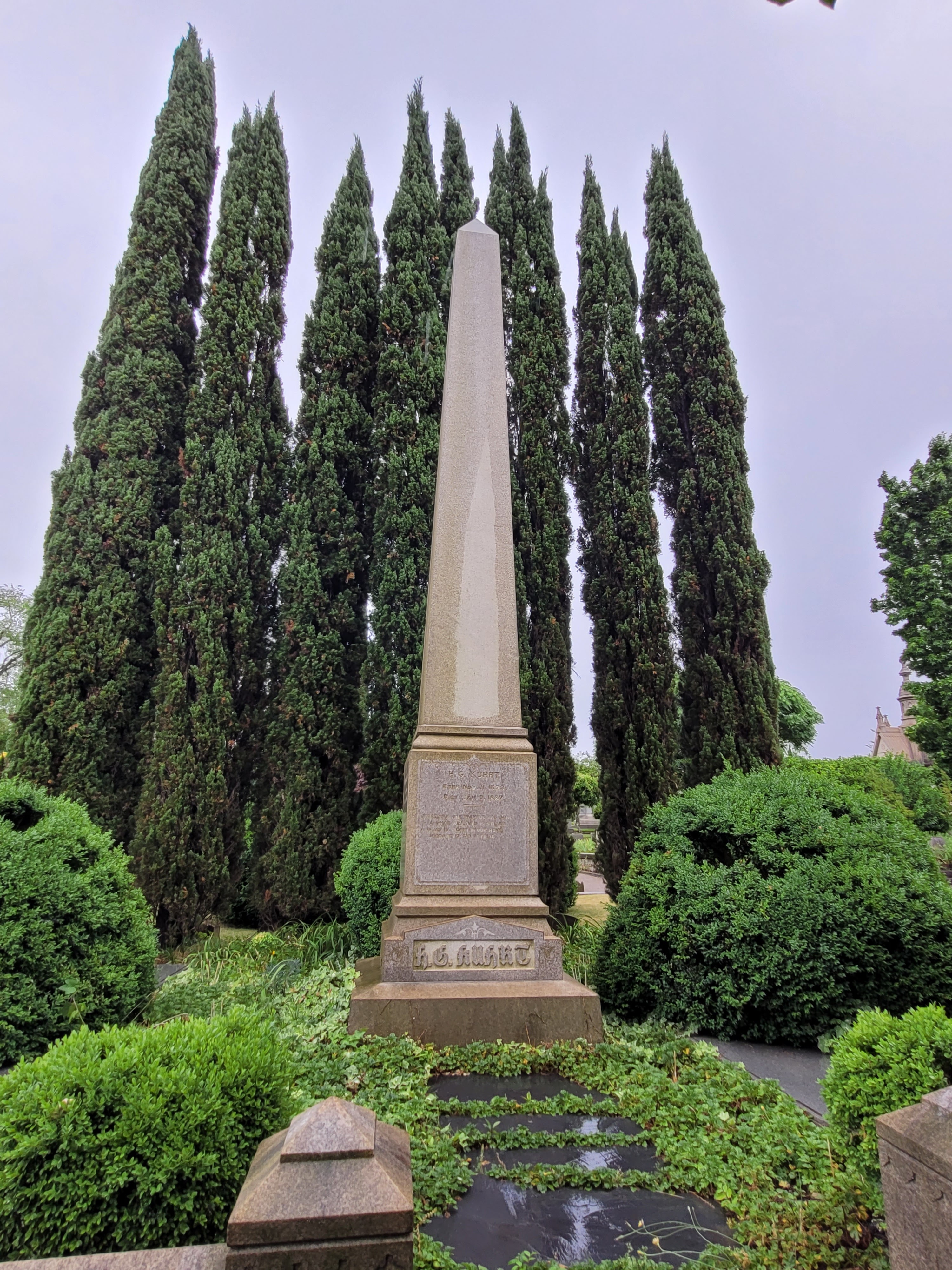 It was a drizzly Monday morning and I had the place to myself. I have always enjoyed the peaceful, somber atmosphere of a well designed cemetery, and the mature landscaping that compliments the memorials.