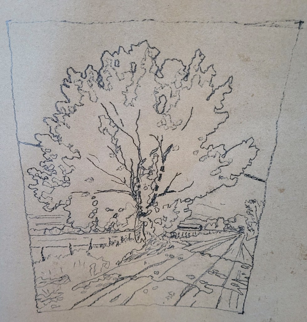 I found the autumn tree painting on line and is just what I wanted to use as a template. It has strong colors, definite shapes, and a nice composition. The finished size is 11″ x 14″.