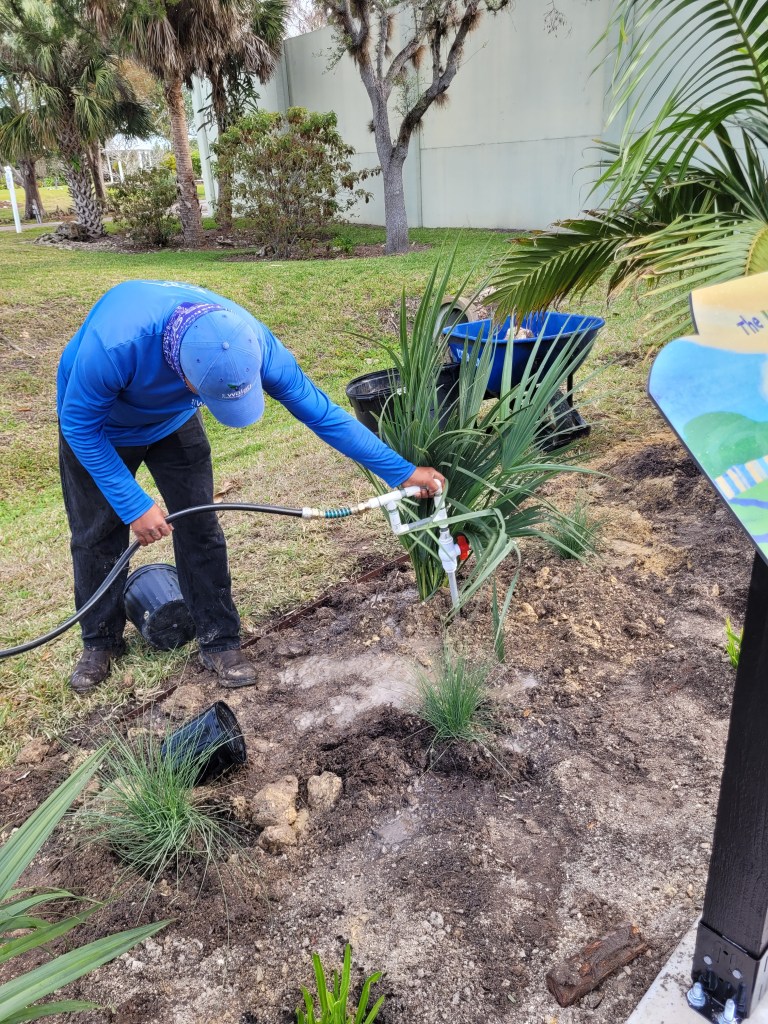 Many thanks to Royal Palm President Jordan Zoellner for helping to organize people and plants in time for the opening ceremony later that morning. He was joined by fellow Everglades Equipment staffer Jackson Sherer as they took turns operating a backhoe that was a life-saver in this former gravel pit.