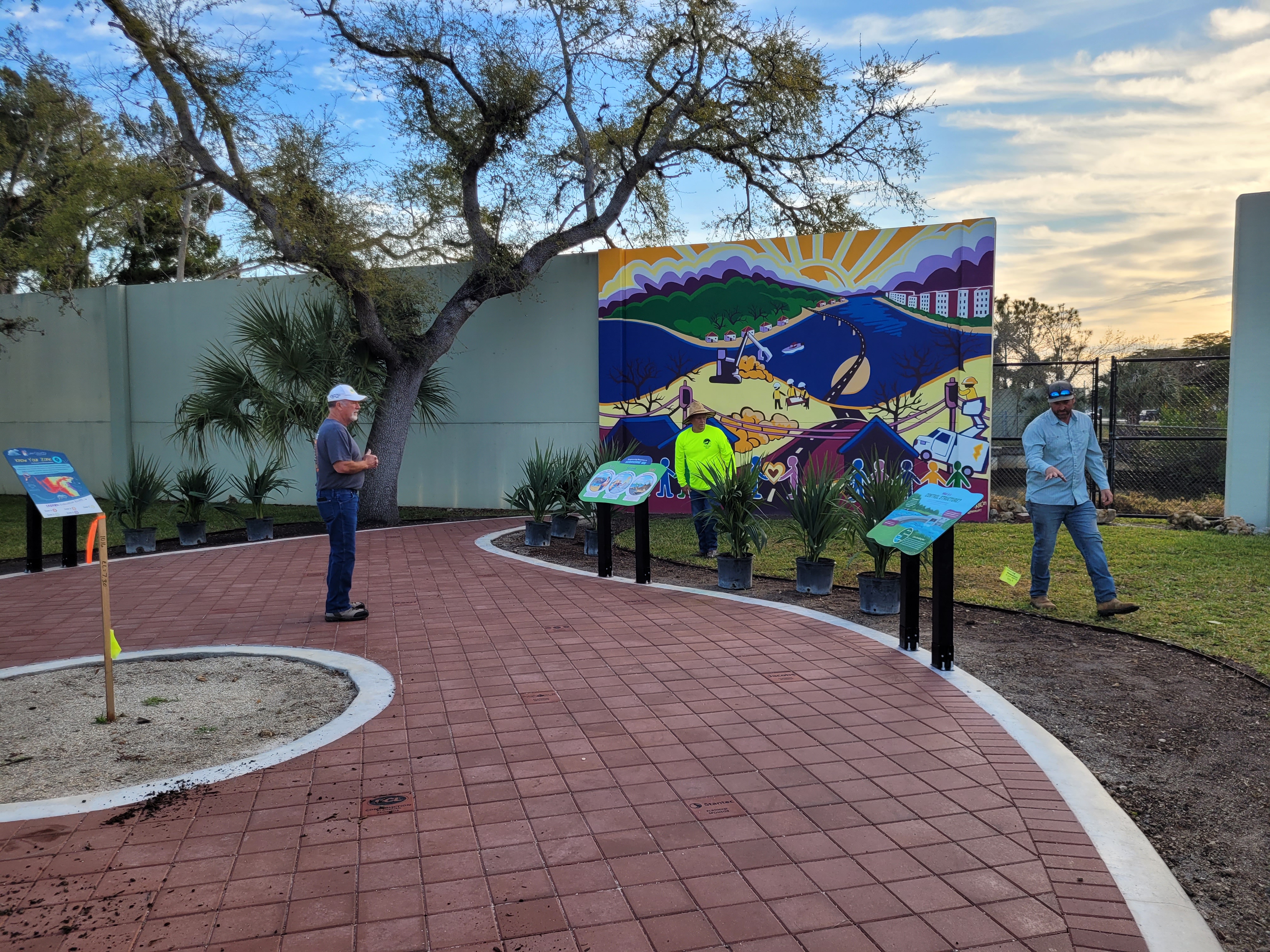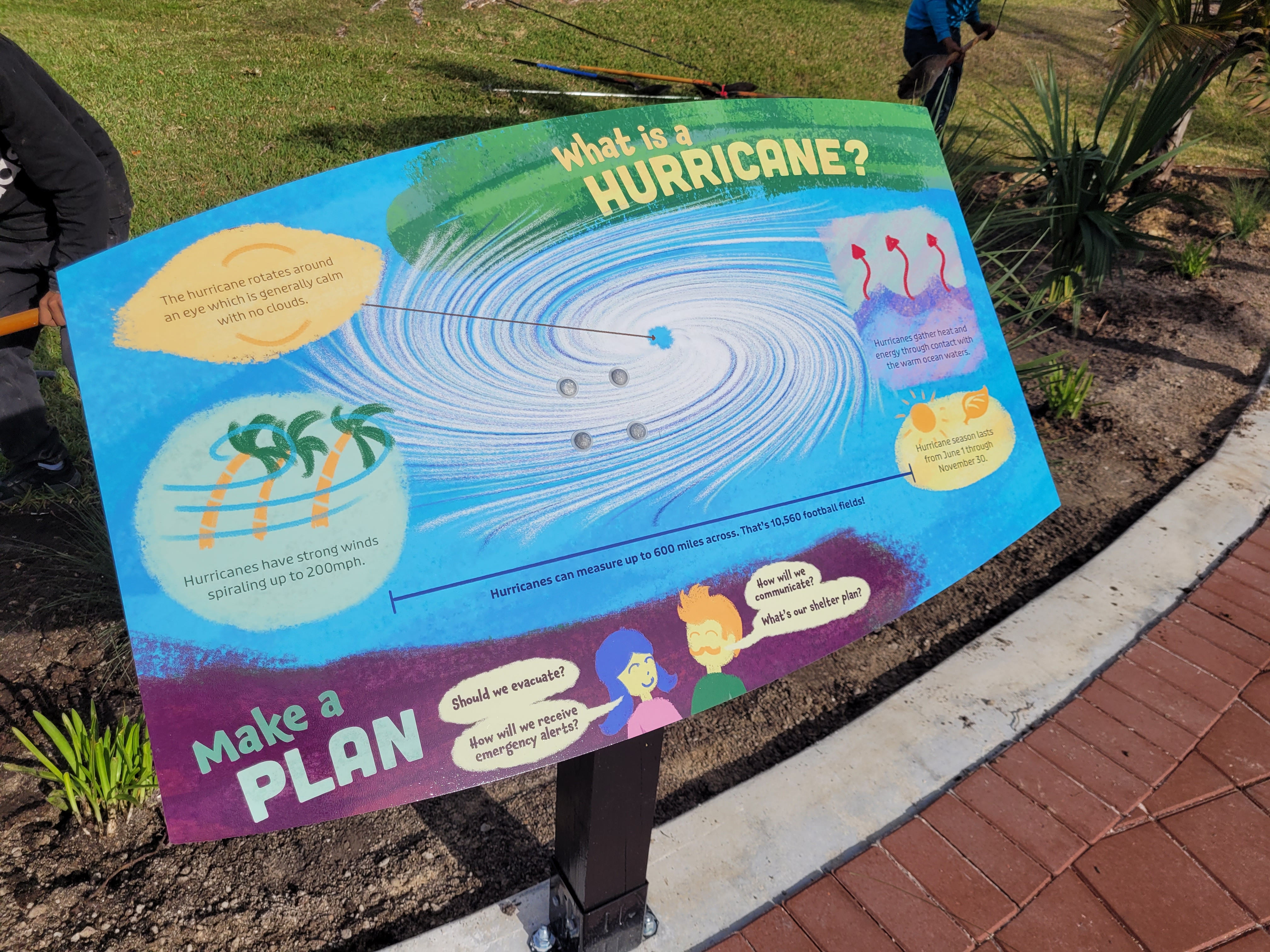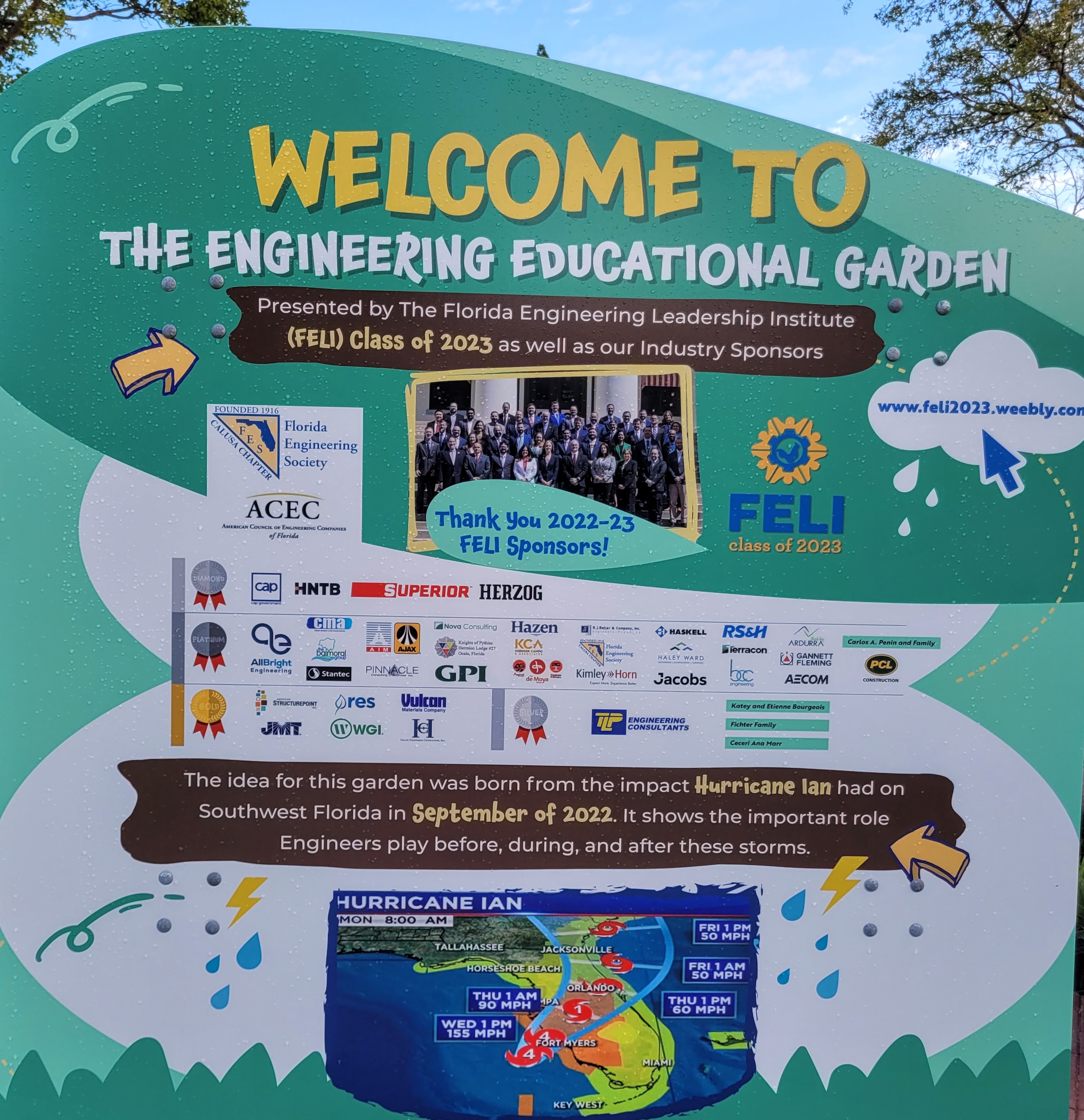 FELI gets credit for the idea of a hurricane Ian remembrance garden; to educate the public about the it-happened-here natural disaster, and how engineering can help minimize the damage. Many donors contributed toward the hardscape. Greater than this environmental beauty and education, the facts presented in their 5 signs might save a life.