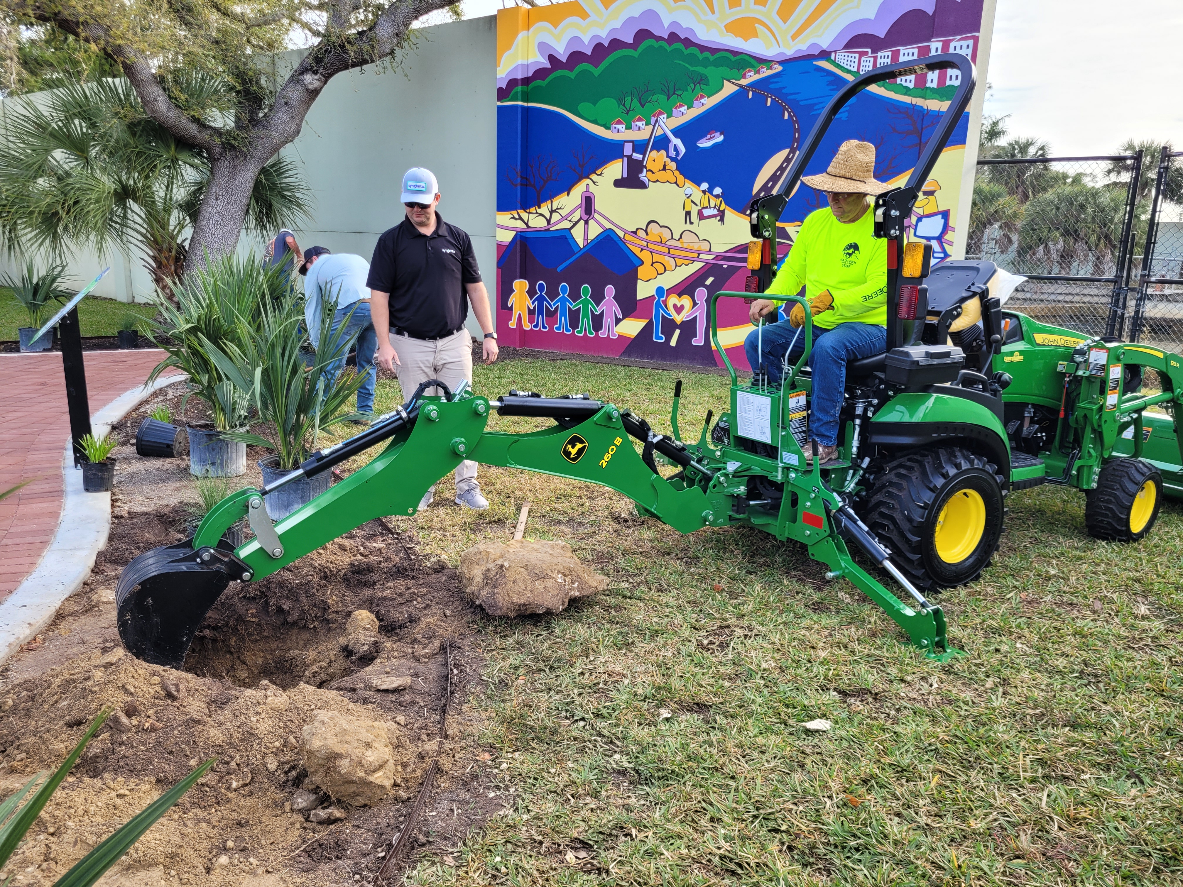 Many thanks to Royal Palm President Jordan Zoellner for helping to organize people and plants in time for the opening ceremony later that morning. He was joined by fellow Everglades Equipment staffer Jackson Sherer as they took turns operating a backhoe that was a life-saver in this former gravel pit.