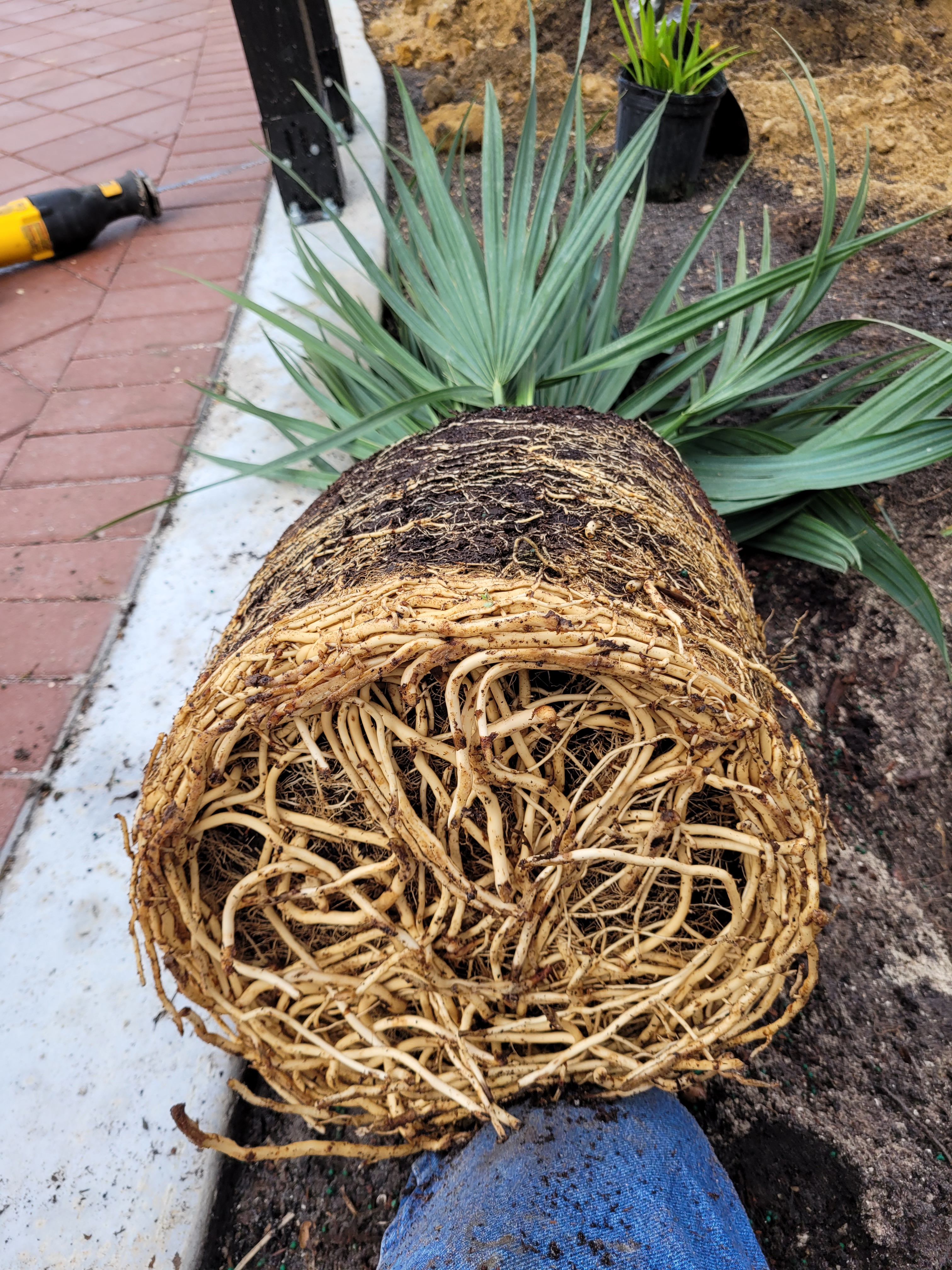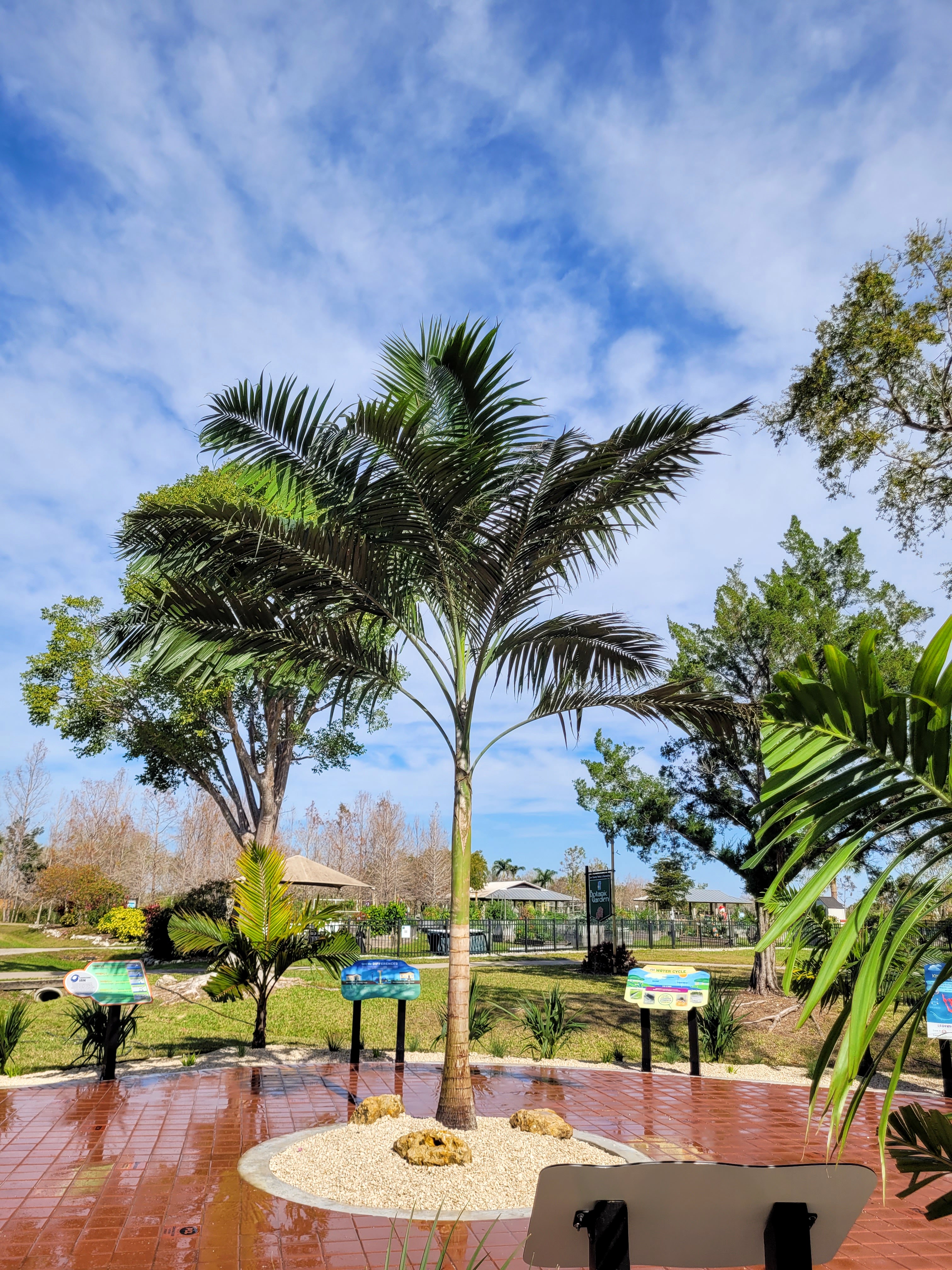 Laurie and Ron Groeneveld with JWD Trees oversaw the planting of the most-appropriate Hurricane palms (Dictyosperma album).