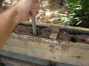 Bob Cook March 21, 2016 I used a “soilless” mix: Fafard #4. It’s a lightweight blend of Canadian Peat, perlite and pine bark. Here I probed down with pole to prevent any air pockets.