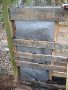 Bob Cook March 21, 2016 One column, filled with soil. I used 3′ fabric, lining the bottom 2/3 first and finishing the top, creating a funnel for the soil.